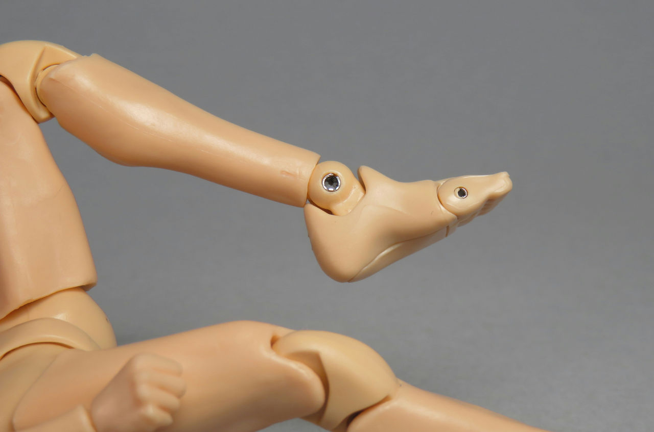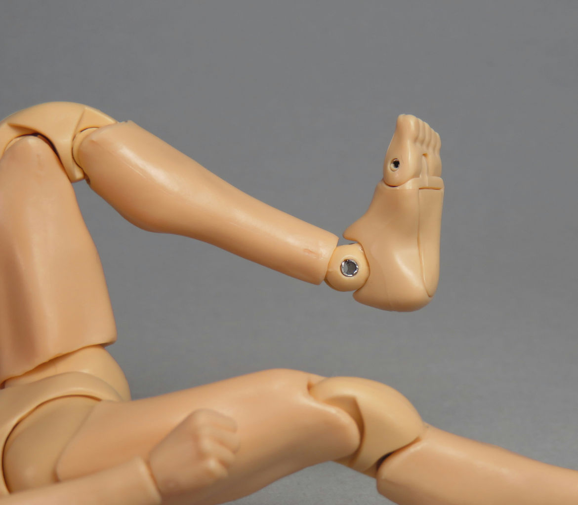 膝を最大まで曲げた状態。足のつま先にもヒンジ可動あり。