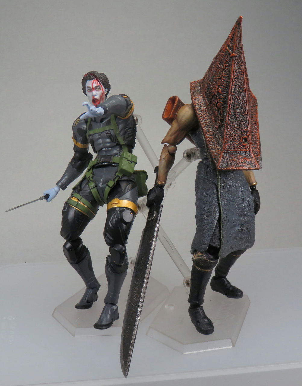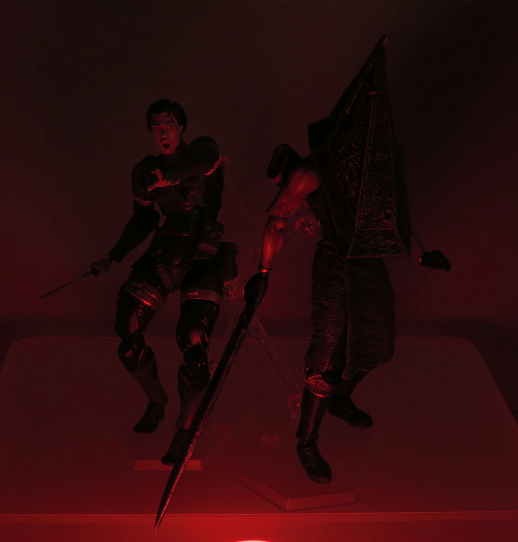 2017年03月02日 【Ⅿy部隊】 レッドピラミッドシング 塗装改造 figmaのレッドピラミッドシングを、リボルテックのスネークを意識した配色に塗り替えました。 ポージングがキャラ崩壊気味なので、苦手な方は注意。 サイレントヒルシリーズに登場する三角頭の人気者レッドピラミッドシング、通称▲様です。リボルテックスネークの体を使うことも考えましたが、キャラが増えてくると、色変えのほうが目立つかという事で塗り変える事にしました。My部隊の▲様はイカした剣士設定なので、アクションも男前です。構え。ビシッズバッバッザンッホラーつながりで、ゾンビ隊員と。ドーン! (オブ・ザ・デッド)おまけ貞子さん逃げてー結構気さくな▲様でした。 その他の記事 「ゲーム キャラクター【My部隊】」カテゴリの最新記事 ↑このページのトップヘ
